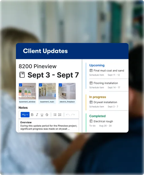 Proposals, documented change orders and easy payment tracking give your clients full visibility into costs, helping them stay aligned with their investment from start to finish.