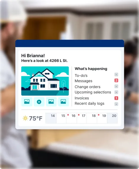 Building or remodeling a home is a big commitment, and your clients deserve to feel part of the process – not left in the dark. Buildertrend keeps everything organized and easy to access, so they can track progress, review details and make decisions confidently, all without digging through emails or waiting on callbacks.